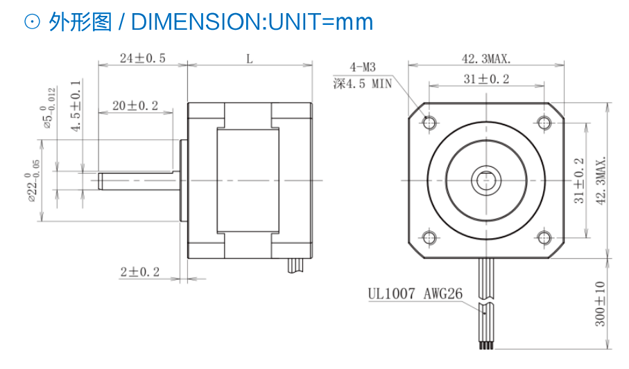 兩相步進電機-42外形圖